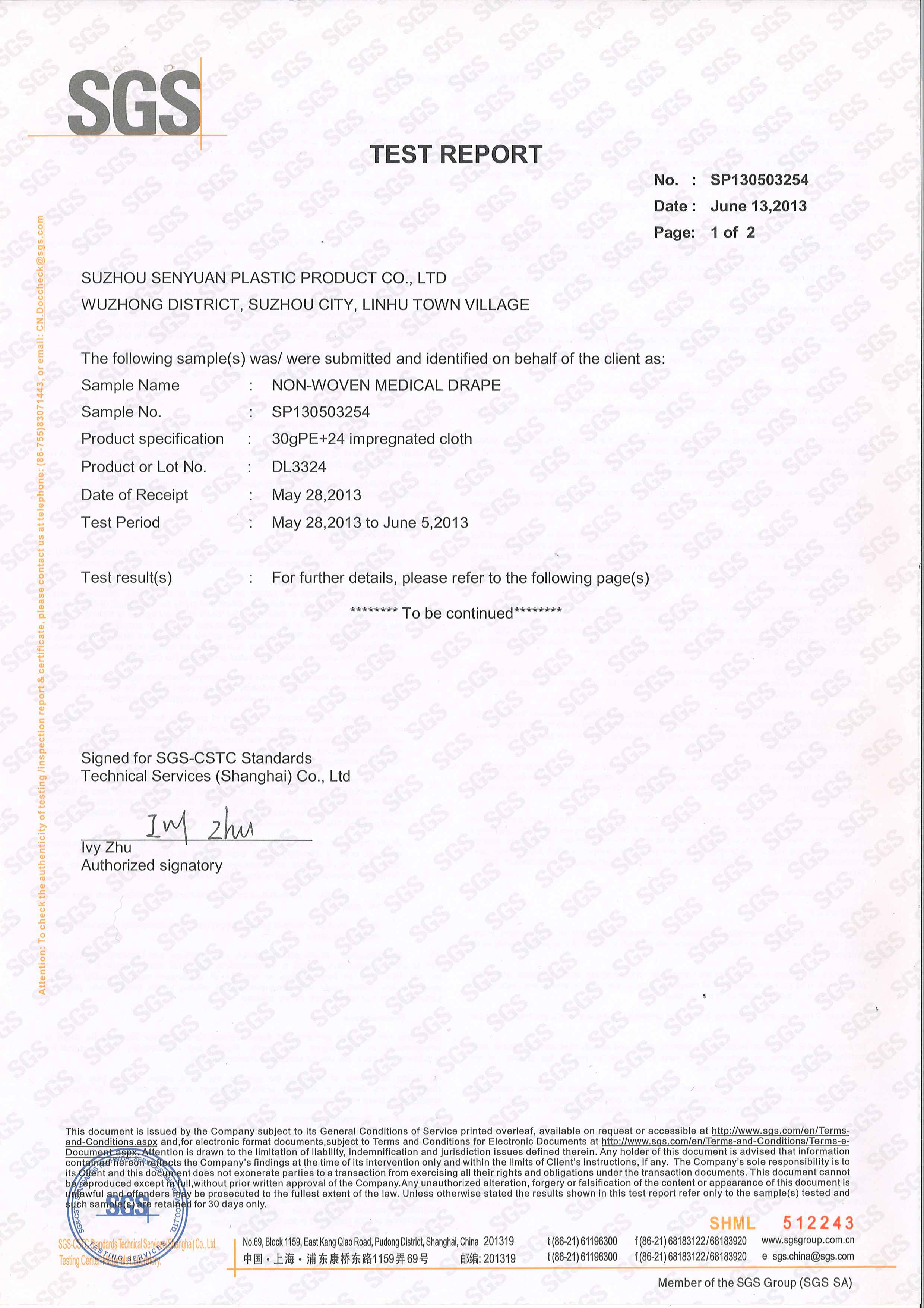 Báo cáo thử nghiệm hỗn hợp vải tẩm SGS DL3324